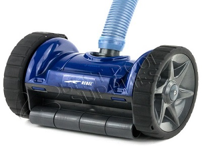 The Rebel cleaner’s programmed steering and compact, two wheeled design moves Rebel decisively throughout your pool. It maneuvers from deep to shallow bottoms up 90 degree floor-to-wall angles all the way to the waterline and into tight spaces that other cleaners miss.